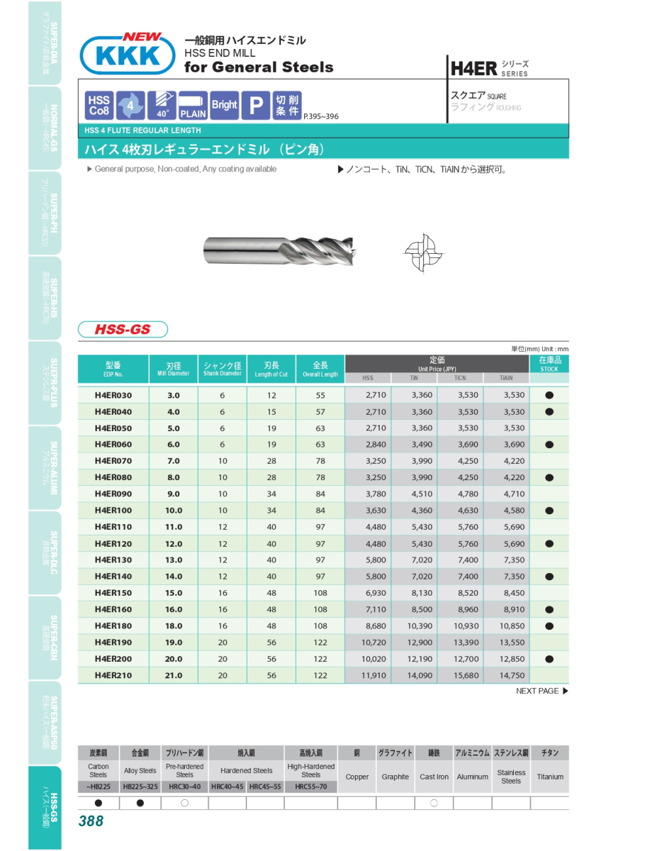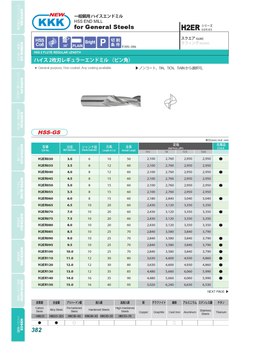 H2ER: Dao phay 2 me cắt Ø3- Ø25 H4ER: Dao phay 4 me cắt Ø3- Ø25