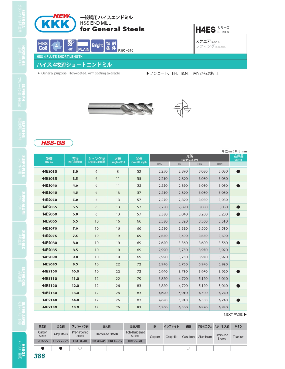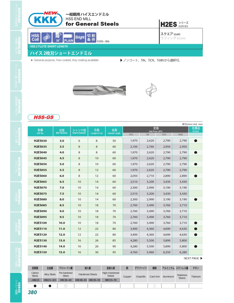 H2ES: Dao phay 2 me cắt Ø3- Ø25 H4ES: Dao phay 4 me cắt Ø3- Ø25