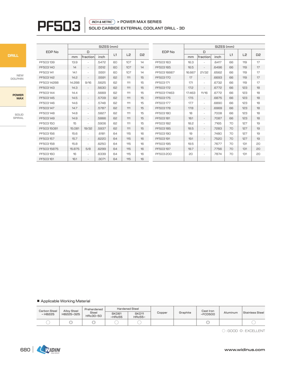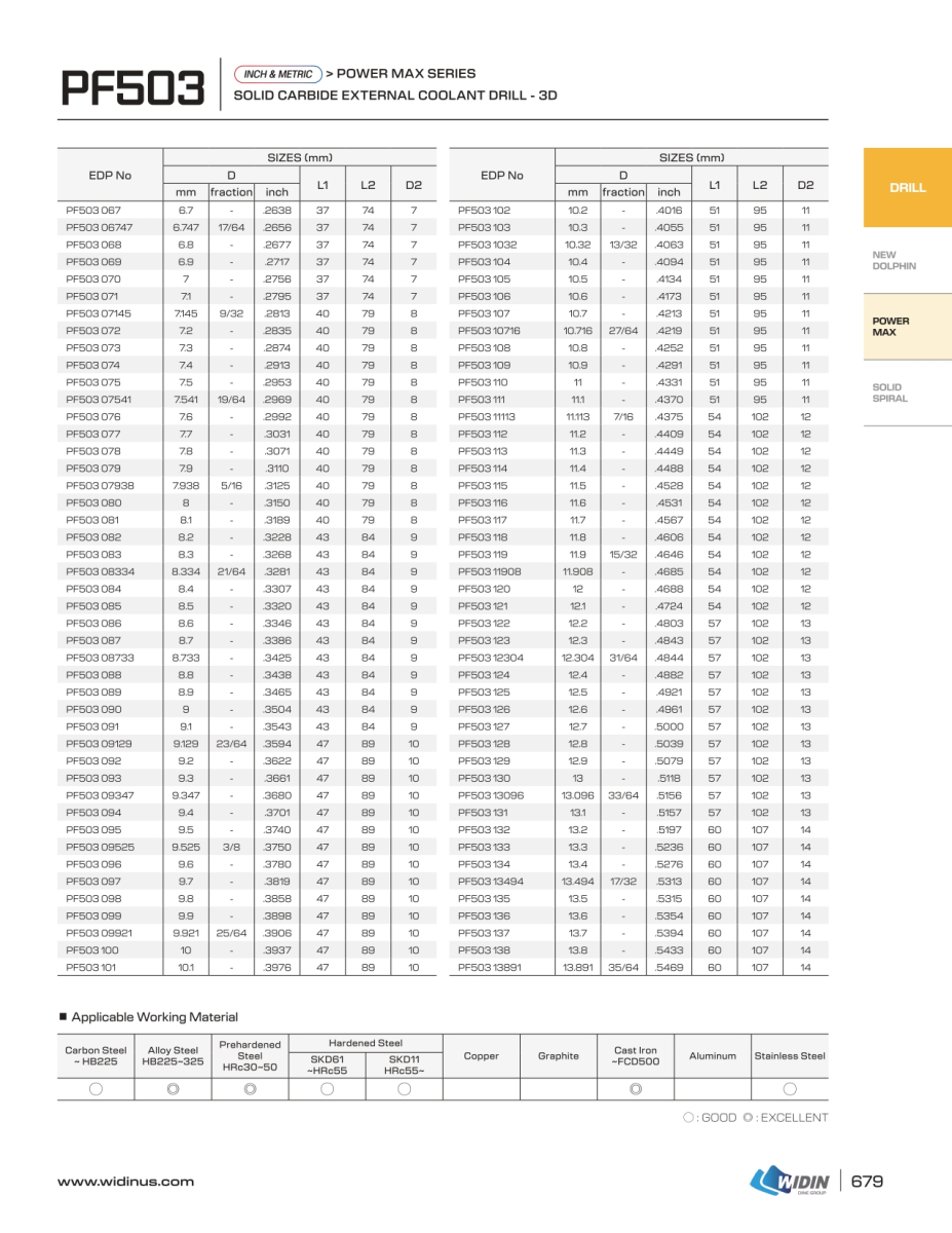 MŨI KHOAN CARBIDE TỐC ĐỘ CAO HIGH SPEED 3D PF503 (WIDIN)
