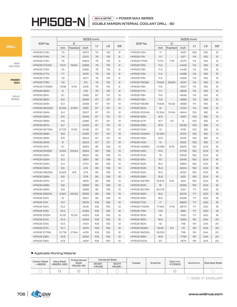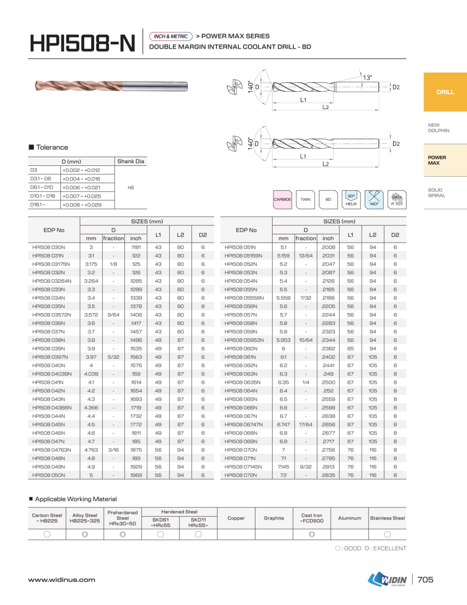 MŨI KHOAN SÂU CARBIDE DOUBLE MARGIN HPI508-N (WIDIN)