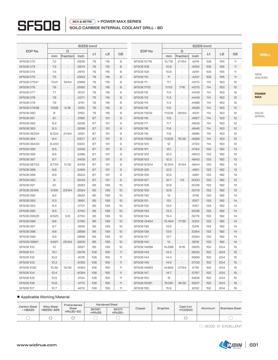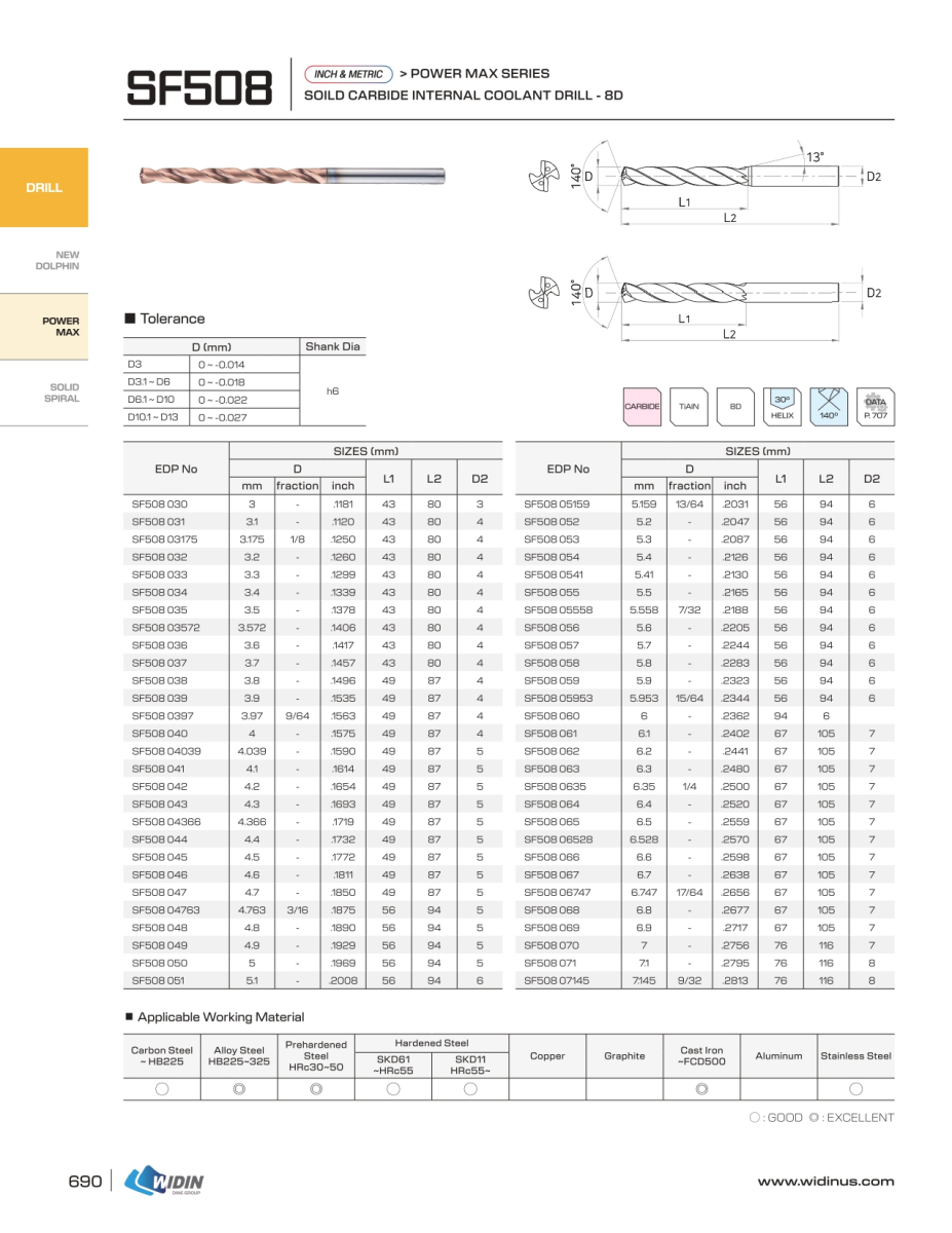 MŨI KHOAN SÂU CARBIDE TỐC ĐỘ CAO SF508 (WIDIN)